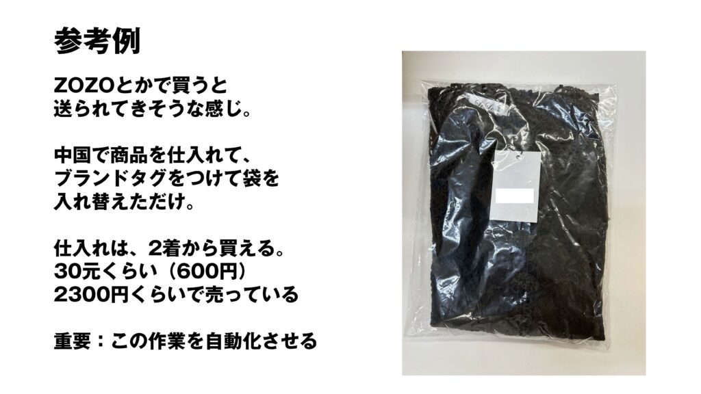 楽天やZOZOで買うと送られてきそうな商品構成を真似して作っています。